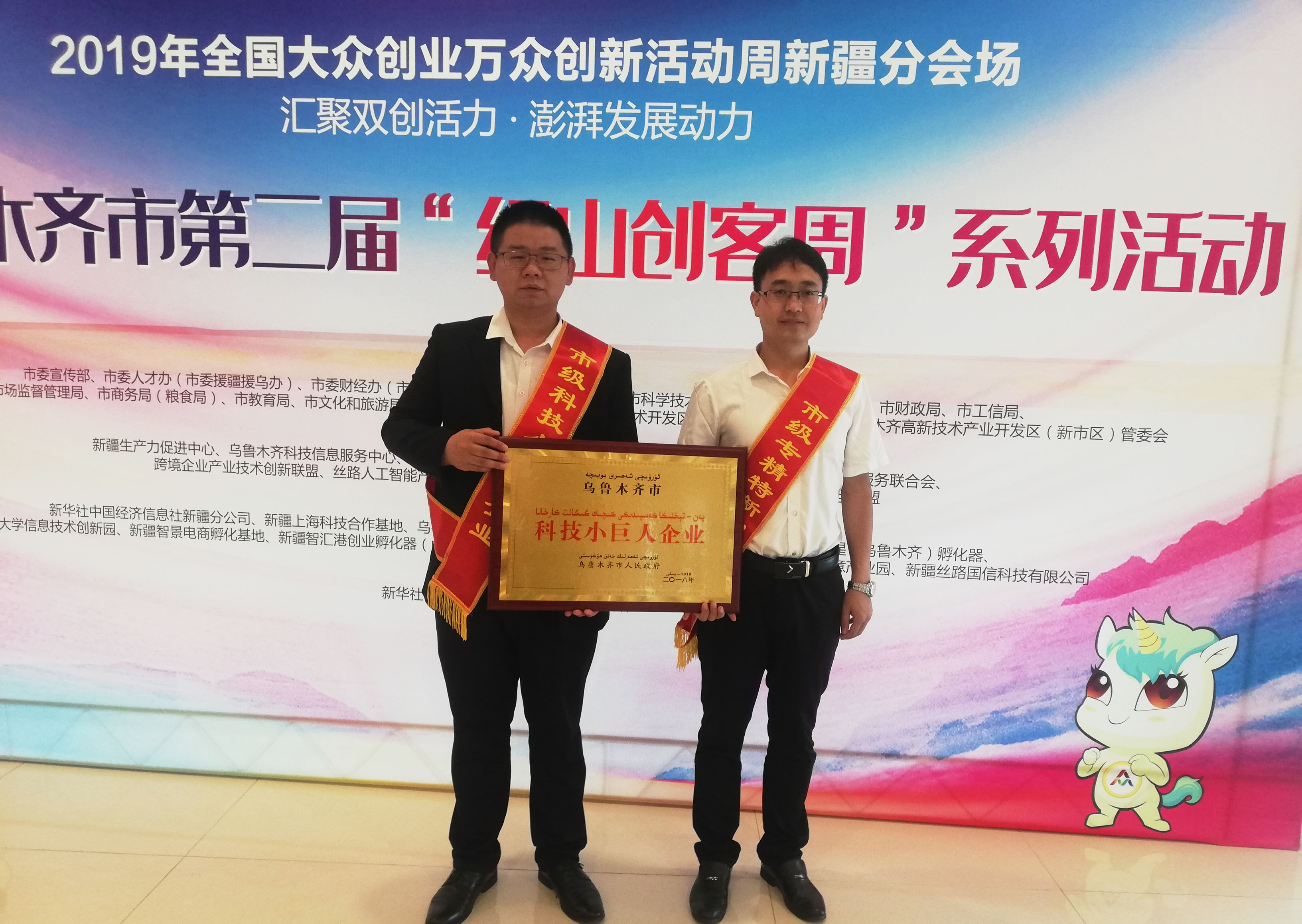 13日上午,由烏魯木齊市人民政府主辦的“匯聚雙創(chuàng )活力 澎湃發(fā)展動(dòng)力”2019年全國大眾創(chuàng )業(yè)萬(wàn)眾創(chuàng )新活動(dòng)周新疆分場(chǎng)烏魯木齊市主場(chǎng)暨第二屆“紅山創(chuàng )客周”系列活動(dòng)在新疆高新人才大廈國際會(huì )議中心隆重舉行。金雪馳是此次活動(dòng)中同時(shí)榮獲兩項殊榮的8家企業(yè)之一。公司總經(jīng)理助理謝志濤代表公司上臺接受授牌。集團科技項目部經(jīng)理宋桂林代表公司做企業(yè)優(yōu)秀項目成果展示。