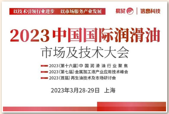 由易貿信息科技主辦的“2023中國國際潤滑油市場(chǎng)及技術(shù)大會(huì )——2023(第十六屆)中國潤滑油行業(yè)聚焦、2023(第七屆)金屬加工液產(chǎn)業(yè)應用技術(shù)峰會(huì )、2023(首屆)再生油技術(shù)及市場(chǎng)研討會(huì )”將于2023年3月28-29日在上海召開(kāi)。金雪馳作為國家級重點(diǎn)專(zhuān)精特新“小巨人”企業(yè)受邀參會(huì )。