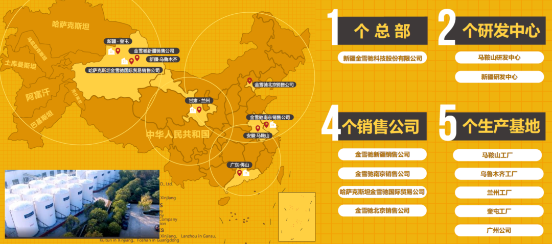 金雪馳奎屯工廠(chǎng),公司自2001年成立以來(lái),市場(chǎng)逐步擴大,銷(xiāo)售區域劃分為疆內和疆外兩大部分,疆內覆蓋南疆、東疆和北疆市場(chǎng),疆外遠銷(xiāo)山東、河南、四川、上海等地。